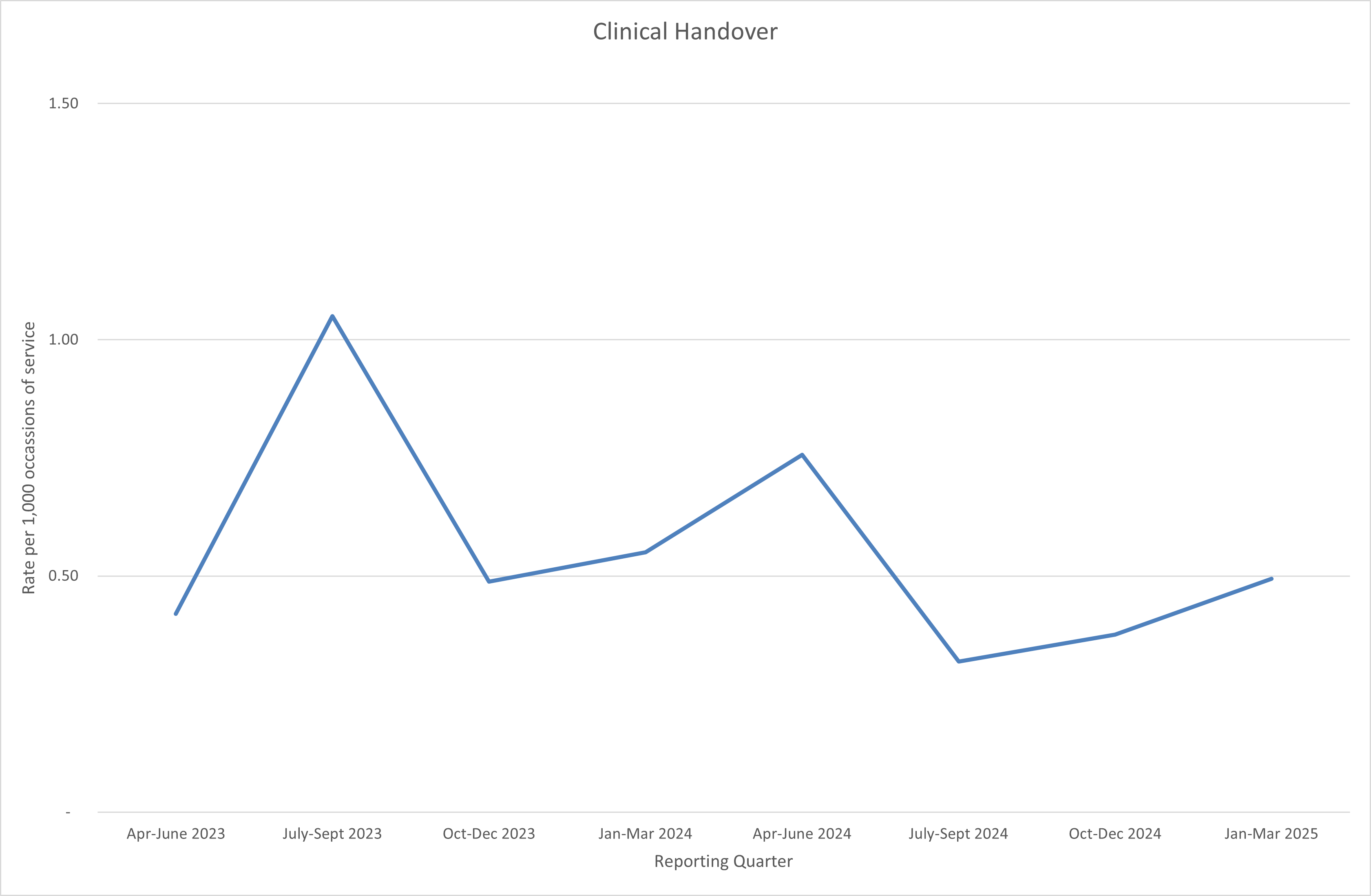 We collect and report clinical information in order to monitor the safety and efficacy of the care we provide. The quality and safety data is measured as the number of incidents per 1000 occasions of service. An occasion of service refers to any treatment or other service provided to out-patients in a health service facility.