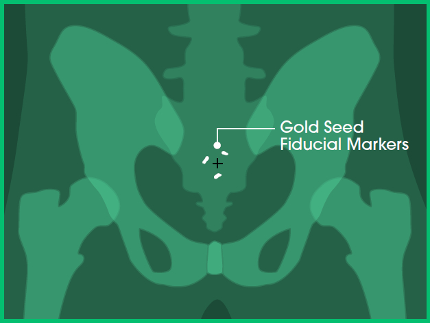 In Image A (below), you can see the gold seed fiducial markers appearing white.