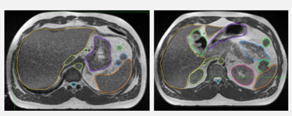 Fig 2: Planning MRI with the target and nearby organs at risk